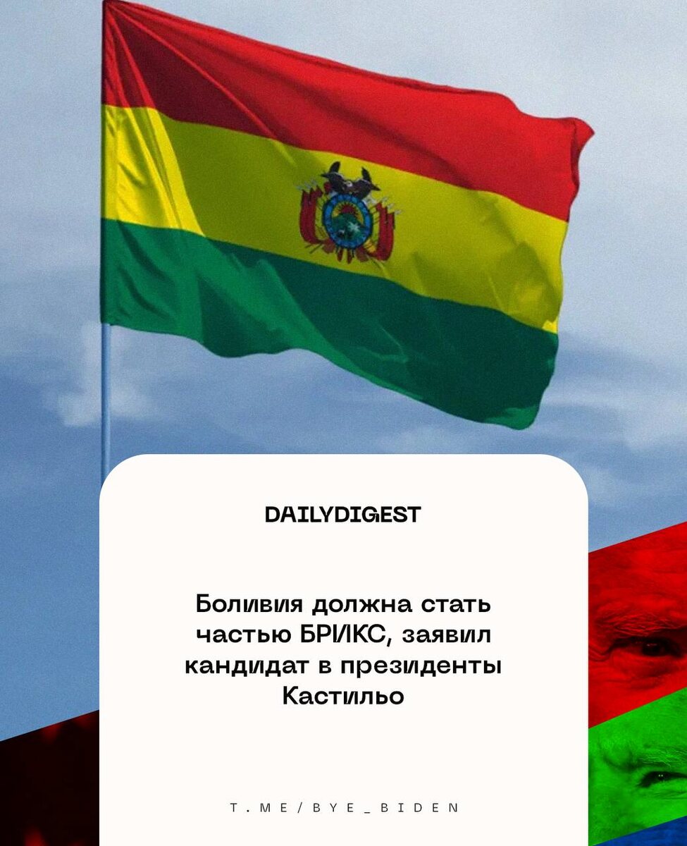 ☑️Главные новости на утро 24 июля: 🔹Боливия должна стать частью БРИКС, заявил кандидат в президенты Кастильо. 🔹Девять тысяч человек участвовали в среду в протестах в Киеве против закона, ограничивающего полномочия НАБУ — украинский телеканал «Общественное». 🔹Ущерб от политики Санду составил €5 млрд, для Молдавии это очень много — Додон. 🔹Байден продал за $10 млн права на публикацию своих мемуаров издательству Hachette Book Group — The Wall Street Journal. 🔹Мерц и Макрон выразили решимость ответить контрмерами на возможные пошлины США в отношении товаров ЕС, если в ходе текущих переговоров не будет найдено решение. 🔹Европа должна была начать платить США за оружие для Украины еще три года назад — Трамп. 👍 БайБайден. Подписаться