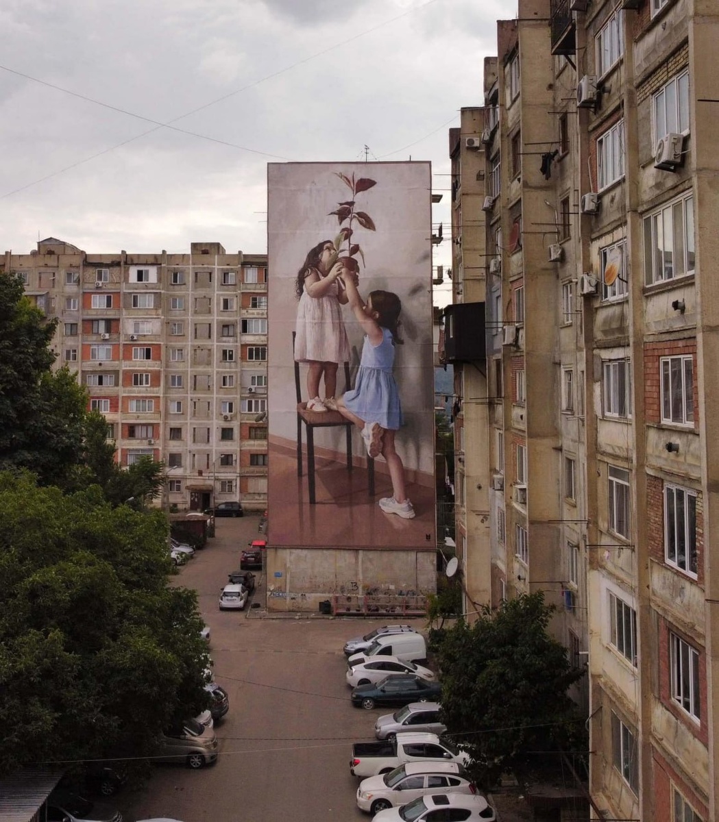 Трогательный призыв к заботе о природе В одном из районов Тбилиси появилась красивая работа итальянского художника Эдоардо Этторре – мурал, посвященный важности заботы о природе. Автор изобразил двух девочек, которые с усилием поднимают растение в горшке на крышу здания, чтобы оно получало достаточно света. Этот образ символизирует стремление человека помочь природе выжить и процветать. 😍 Нам кажется это настоящее произведение искусства. Как вам? Фото: Georgia MURAL Fest @zg66