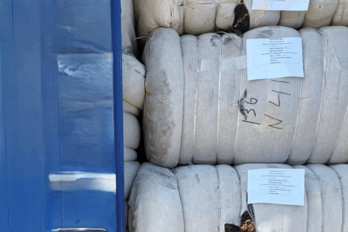 19 июля работники Оренбургского регионального управления Россельхознадзора совместно с представителями других контролирующих органов задержали автотранспорт на российско-казахстанской границе. Грузовик следовал во Владимирскую область, перевозя 17,3 тонны промытой овечьей шерсти. Фото: Россельхознадзор по Оренбургской области У водителя отсутствовала требуемая ветеринарная документация, а на товаре не было маркировки, позволяющей идентифицировать производителя. В связи с выявленными нарушениями, на перевозчика был наложен административный штраф, а шерсть была отправлена обратно в Казахстан. Кому во Владимирской области везли столько овечьей шерсти, не сообщается.
