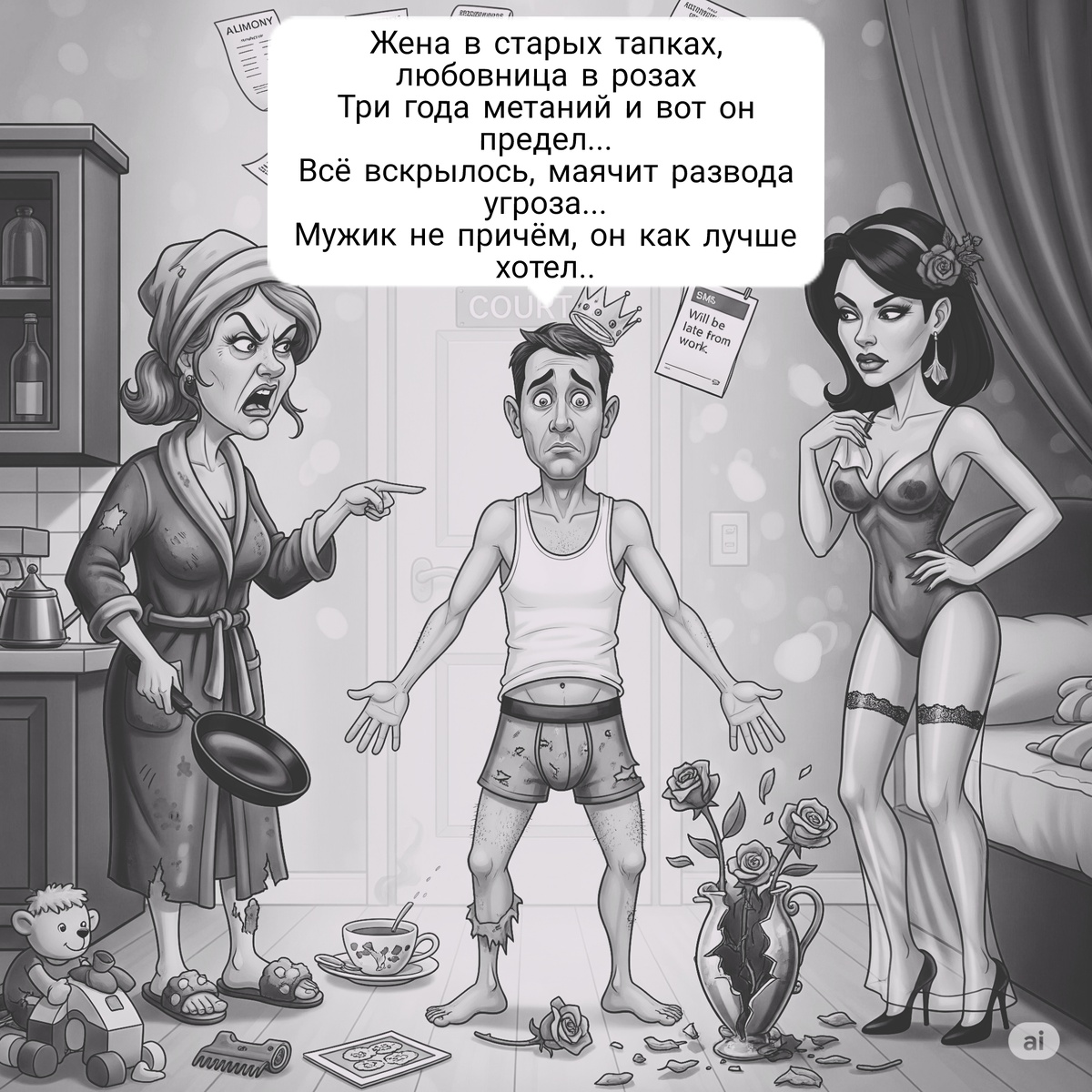 Чудится мне, глядя на мужские зарплаты и женские запросы, что, в наше время, одну-то жену потянуть – уже подвиг! Ан нет! Находятся виртуозы, которые умудряются разрываться между двумя семьями. И лавировать, как канатоходец, только не между любовью да вниманием, а между двумя очагами, двумя комплектами детей, двумя женскими ожиданиями... Чего ради? Неужто в одной-то семье вдруг стало тесно или скучно? Тема эта у меня в голове назрела неспроста! Коллектив у нас – девичий рай, процентов на 80. И, как водится, в нерабочие минутки ловим последние новости с фронта под названием «Семейная жизнь». Сплетничаем? Еще как! Но я, между прочим, вычитала, что сплетни – это мощный социальный клей! Особенно когда объединяешься против общего «врага» – нерадивых мужей, например. Очень сплачивает, проверено. Короче, у нас тут статистика плачет: на 6 девчонок – всего 2 мужика. И оба, как на подбор, – с двумя семьями на плечах. Один свой статус «султана» не скрывает, будто медаль носит. А вот у второго «
