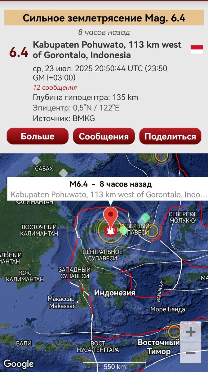 Согласно прогнозу от 17 июля произошло землетрясение сильнее М5.7 в районе Сулавеси