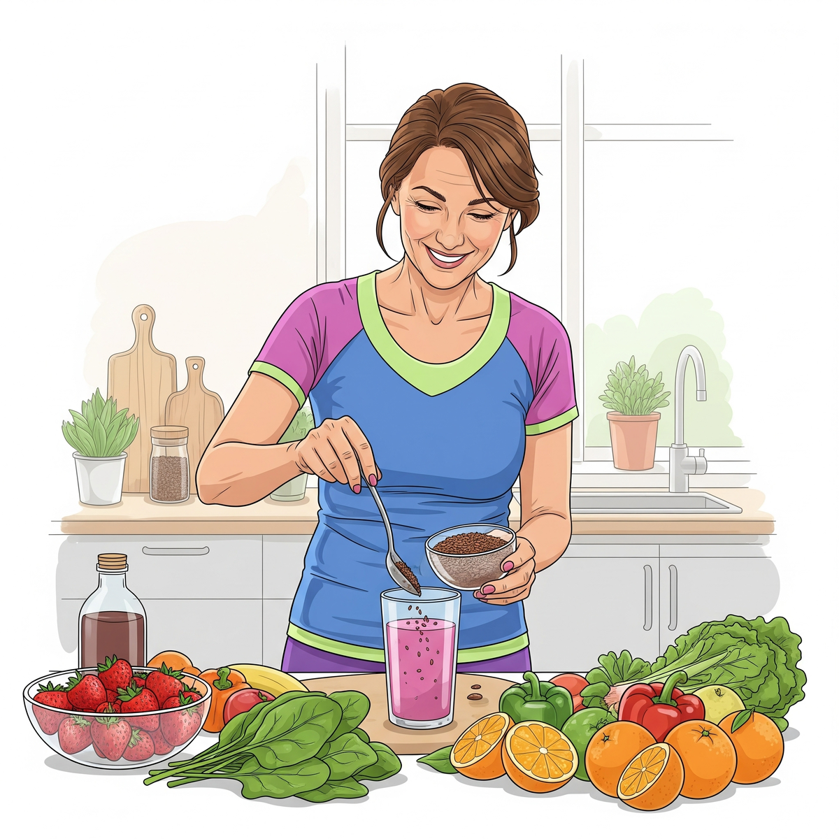 - Завтрак: Добавляйте 1-2 столовые ложки молотых семян льна в кашу, йогурт или смузи.