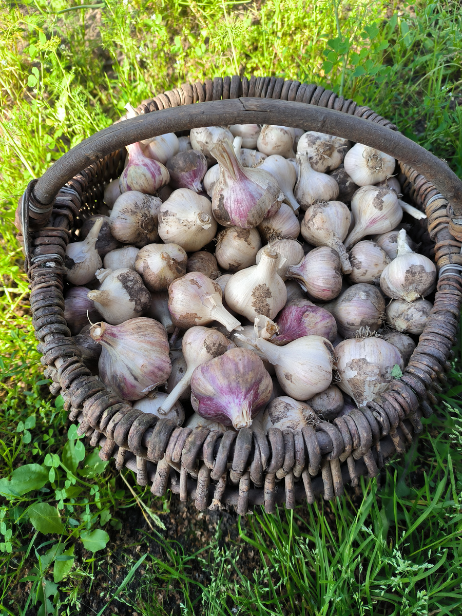 В этом году весь июнь и июль идут дожди, урожай чеснока хороший.