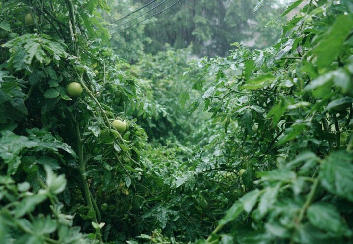 Лето выдалось дождливым — и ваши томаты будто сошли с ума: вместо кистей с завязями они наращивают мощную зелёную массу. Это типичная картина жирования — состояния, когда растение тратит все силы не на завязывание плодов, а наращивание ботву. Разберёмся, почему это происходит и как вернуть томаты к нормальному плодоношению. Азот — отличный помощник на старте роста. Но его переизбыток (особенно в дождливую погоду) провоцирует бурное наращивание зелени в ущерб цветам и плодам. Органика вроде навоза, помёта и компоста в такой период только усугубляет ситуацию. Эти элементы жизненно необходимы для формирования цветочных кистей и завязей. В условиях влажности их усвояемость падает, особенно фосфора. Высокая влажность и низкие температуры «вымывают» микроэлементы из почвы, затрудняя питание растений. Итог — листья становятся темно-зелёными, с синим отливом, но завязей почти нет. Обратите внимание на следующие признаки: ✅ Листья крупные, мясистые, тёмно-зелёные, иногда с синеватым оттенком.
