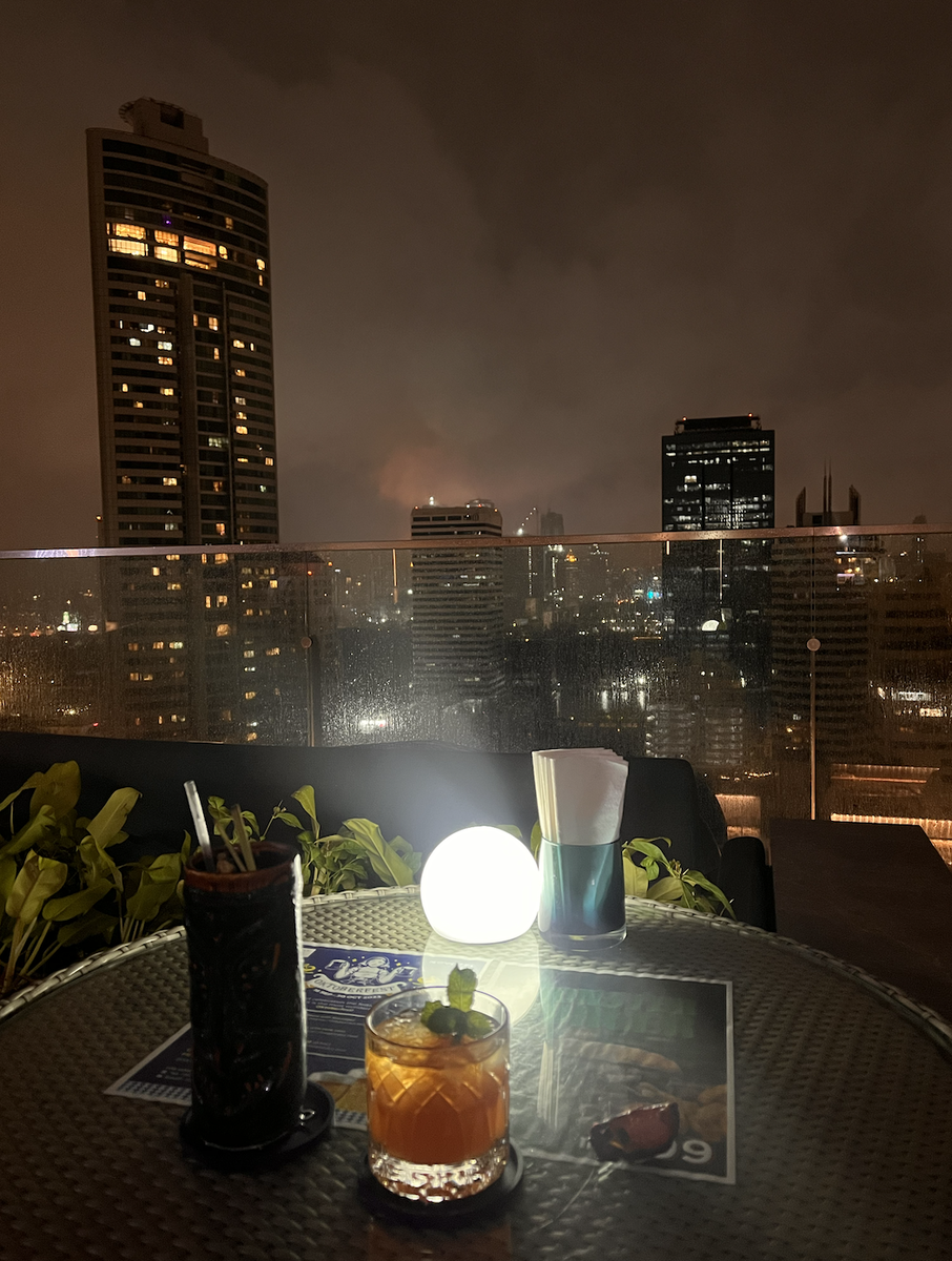 Бар, куда я ходила за двумя вещами: вид на вечерний Бенчакити парк и мой любимый коктейль. Расположен на 27-м этаже отеля Novotel.
