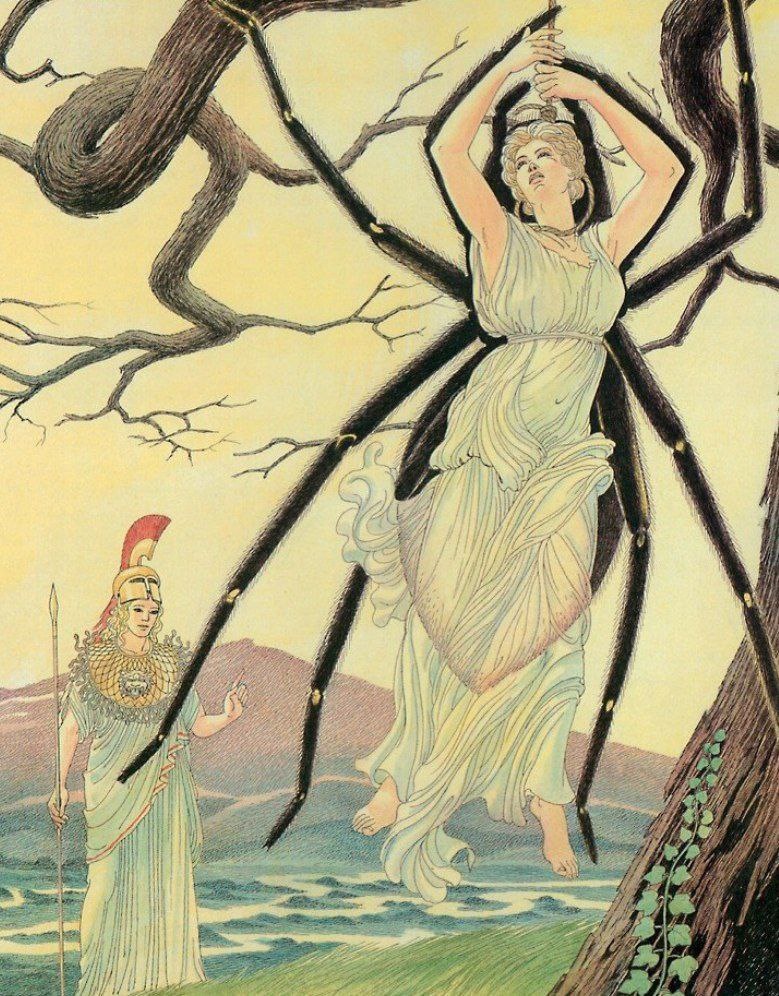 ПАУТИНА КАК МЕТАФОРА В мире, где гордыня и талант сплетаются в опасный узор, родилась легенда об Арахне —талантливой ткачихе, которая бросила вызов богине Афине, утверждая, что превосходит её в мастерстве. Этот вызов символизирует человеческую дерзость и стремление превзойти богов, что в античной мифологии всегда каралось. Однажды Арахна осмелилась и вызвала саму Афину на состязание. Богиня, сначала попыталась образумить гордячку: «Дитя моё, смирись, признай превосходство бессмертных, и я буду милостива». Но Арахна лишь рассмеялась. Когда началось состязание, воздух наполнился магией: Афина ткала сцены божественного величия, олимп, сияющий в золоте, богов, вершащих судьбы мира. Но Арахна выбрала иной сюжет в котором она выткала все грехи бессмертных: Зевса, превращающегося в животных ради любовных утех, Посейдона, насылающего бессмысленные бури, саму Афину, жестокую и мстительную. Это был не просто ковёр, а был обвинительный акт, вытканный золотом и багрянцем. Разгневанная Афина р