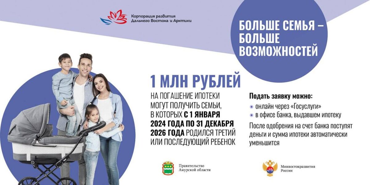 В этом году 235 амурских многодетных семей получили по миллиону рублей на погашение ипотеки