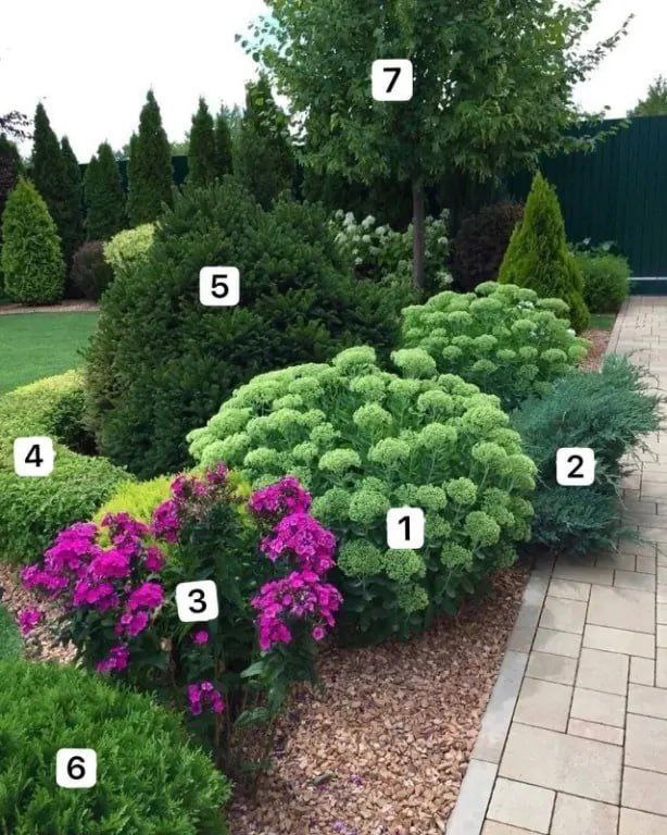 Яркий миксбордер вдоль садовой дорожки 🌸 🤩 Очиток видный Бриллиант: Неприхотливый многолетник, отлично подходит для создания ярких пятен в композиции. 🤩 Можжевельник чешуйчатый Блю Карпет: Карликовый хвойник с голубоватой хвоей. 🤩 Флоксы: Классика для миксбордеров. Простой уход, хорошая зимостойкость, пышное цветение и чудесный аромат. 🤩 Спирея японская Голдфлейм: Декоративный кустарник с золотистыми листьями, которые осенью приобретают багряные оттенки. 🤩 Ель колючая Пигмея: Карликовая ель с густой кроной. 🤩 Туя западная Даника: Еще один карликовый хвойник с шарообразной кроной. 🤩 Липа войлочная Брабант: Высокое дерево с крупными листьями. Ставьте ❤️, если вам понравился этот пост! Больше советов тут, подписывайтесь: 🏡 ДАЧА в Телеграмм 🏡 ДАЧА на Дзен 🏡 ДАЧА во ВКонтакте