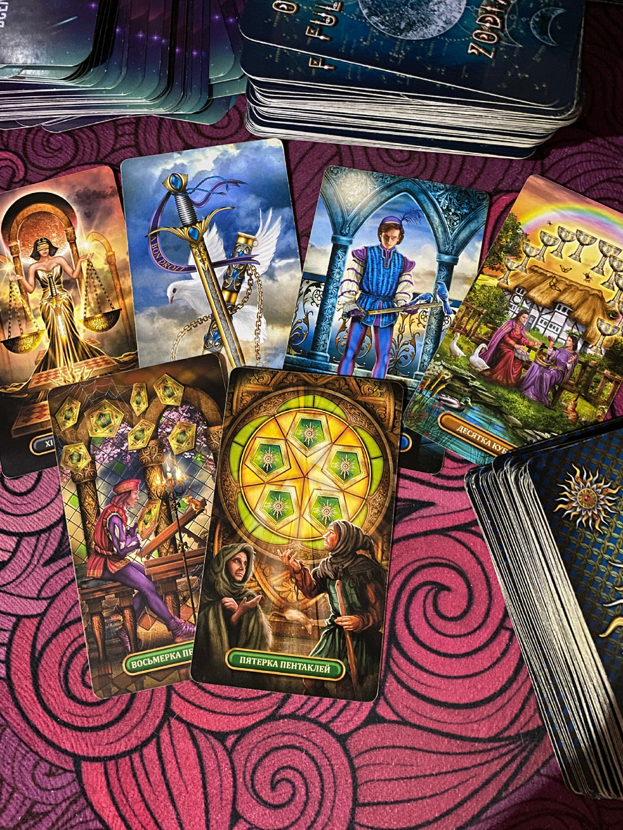 Здравствуйте мои дорогие друзья ! Гости, подписчики, зрители этого канала. Меня зовут Елена. Приглашаю Вас на сегодняшний таро расклад на тему : Он резко принял решение относительно вас и ваших отношений . Давайте будем смотреть какое решение мужчина принял?! А между этим, пока я подготавливаю эту замечательную колоду карт Королевское золочёное таро, хочу вас дорогие друзья поблагодарить за ваши лайки, комментарии , подписки, за вашу поддержку этого канала . Это всегда очень ценно. Для начала я сделаю небольшую сигнификацию вам и мужчине . Этот расклад актуален для тех кто сейчас не вместе . Давайте посмотрим в каких он энергиях на данный момент времени находится . Давайте будем смотреть . Ну вот видите, тут как раз карта 5 пентаклей - карта кризиса в ваших отношениях, он чувствует себя покинутым , нету радости сейчас как у него так и у вас. Как чёрная полоса сейчас между вами, возможны у него материальные проблемы, переживает он эмоционально и пессимистически настро