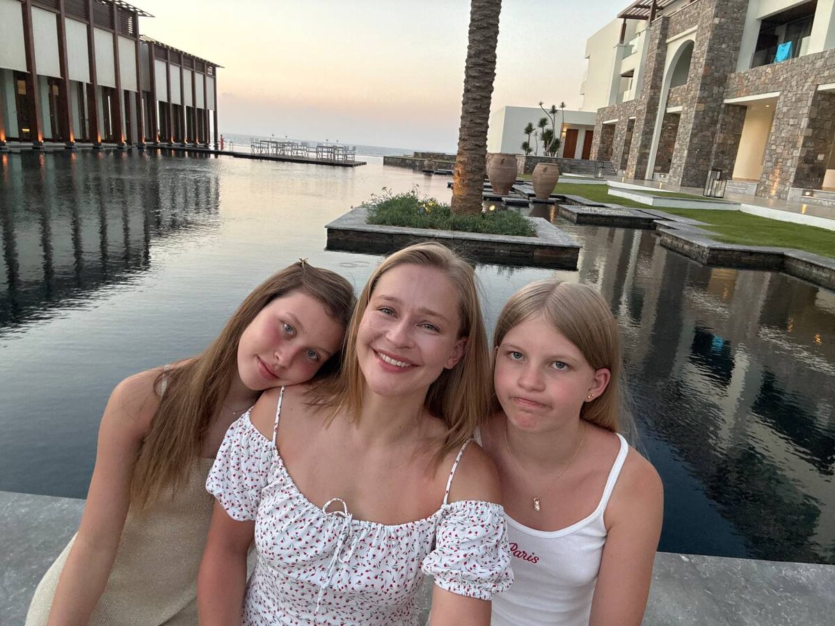 Юлия Пересильд вместе со своими дочерьми от Алексея Учителя отдыхает на Крите