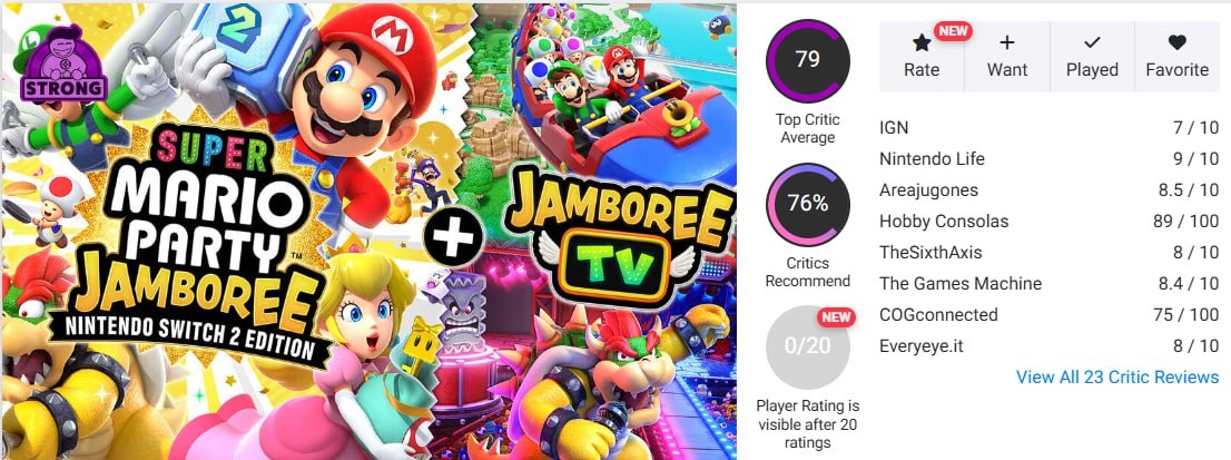 Это моя вечеринка Сегодня вышла обновлённая и дополненная Super Mario Party Jamboree с подзаголовком Nintendo Switch 2 Edition + Jamboree TV. Первые рецензии не заставили себя долго ждать. У игры достойные 79 баллов на OpenCritic. Многие критики в своих текстах вспомнили, что оригинальная Super Mario Party Jamboree — ультимативная пати-игра, а вот надстройка для Switch 2 не вызвала однозначного одобрения журналистов. Так, одни авторы находят мини-игры с камерой прекрасной возможностью раскрыть потенциал этого аксессуара, а другие пишут, что камера не всегда правильно считывает ваши движения, а сами режимы, использующие её, кажутся просто техно-демками. Похожая ситуация и у мини-игр, основанных на управлении мышью. К примеру, портал Checkpoint Gaming отмечает точность движения джой-кона в этом режиме даже при игре на неровной поверхности, а автор Nintendo Blast называет эту функцию Jamboree неудобной. Super Mario Party Jamboree — Nintendo Switch 2 Edition + Jamboree TV доступна на