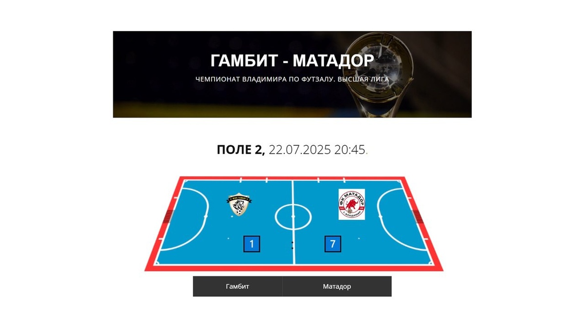 Чемпионат Владимира по футзалу. Высшая лига. 22.07.2025 г. Гамбит - Матадор 1:7 (1:4) Обзор