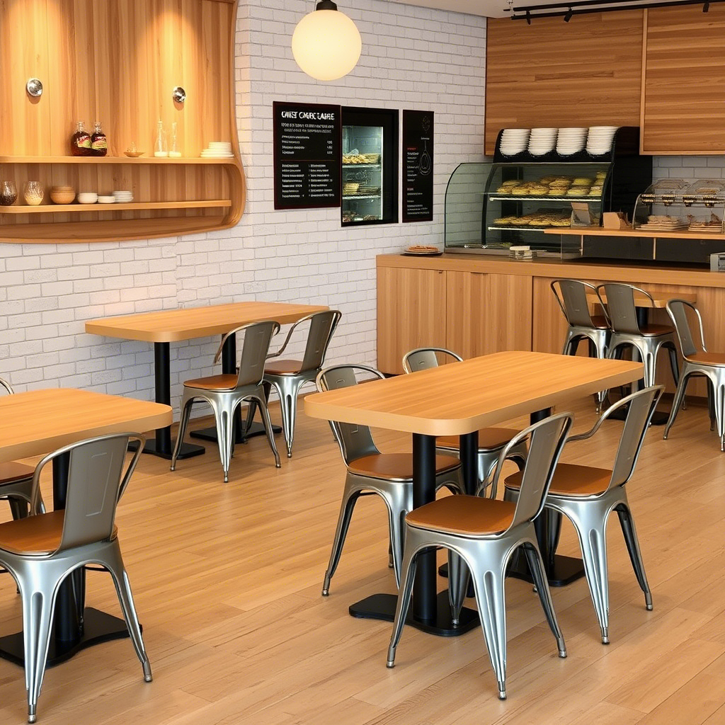 Это часть комфорта, безопасности и рентабельности вашего бизнеса. Рассказываем, как выбрать мебель, которая будет работать на вас , а не против. Перед тем как выбирать столы и стулья — составьте план помещения. Важные параметры: 👉 Совет: используйте 3D-планировку. Мы делаем её бесплатно для клиентов — чтобы вы видели, как будет смотреться мебель до установки. Гость должен сидеть комфортно, но не задерживаться на часы , если у вас небольшая площадь. Стул должен выдерживать минимум 120 кг , не шататься и не скрипеть. Стул должен легко мыться. Особенно — если у вас много детей. Стулья, которые можно пододвинуть под стол и освободить пространство , — огромный плюс. Цвет и форма стульев должны вписываться в общий стиль : 👉 Наш совет: для пекарни чаще вс