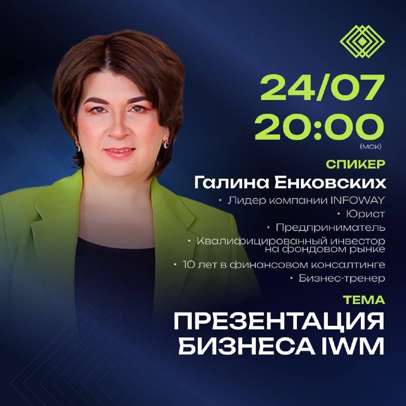 Для тех, кто хочет умножить доход и создать капитал! 🔥Уже сегодня в 20:00 презентация бизнеса с Галиной Енковских! ЛИДЕР INFOWAY! - Успешный предприниматель - Профессиональный инвестор на фондовом рынке - Более 10 лет опыта в финансовом консалтинге Ждём всех! Ссылка: https://us06web.zoom.us/j/2116731674?pwd=xahqmhZLmGsNMAcfVYG8sNdiNWlLRY.1