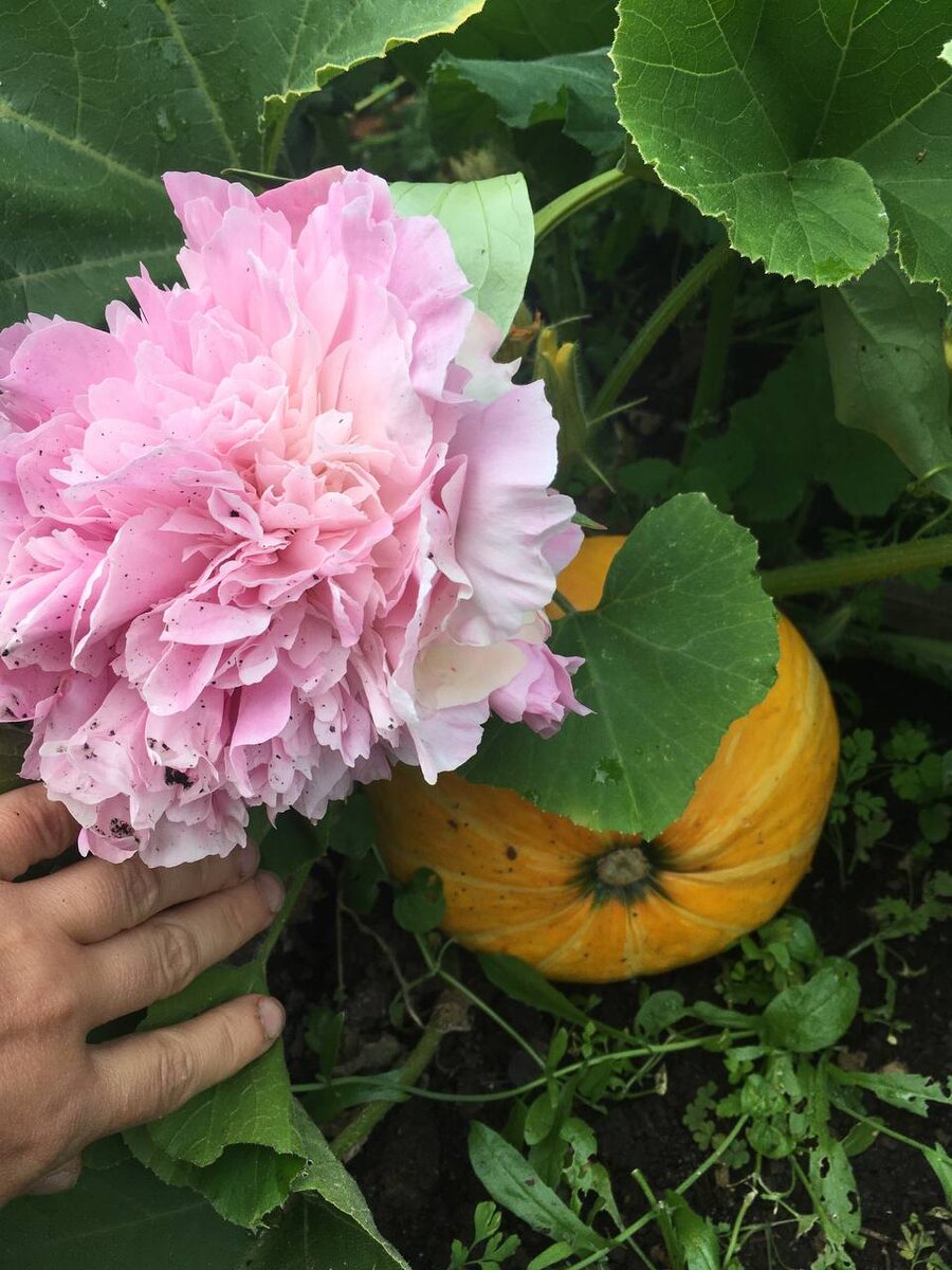 Доброе! Садовое! Немного садовых жителей:) В этом году категорически ничего не успеваю.. Наконец-то завязалась дыня Мечта Лентяя, привитая на рут. То ли наш климат, то ли я ее не прищепнула во время.. но я думала это должно было произойти раньше!!! У меня цветёт пион Pink Parfait до сих пор, соцветия наклонились от дождей к тыкве Халва:) Эпично получилось. Папа сказал, что она поспела! Ну не знаю… Мои первые баклажаны.. в первые сеяла! Забавные у них цветки. Вот только они начали завязывать плоды! Из перцев вариегатный Mattapeno .. незаметно сделал перчики и Thunder Coco Brown начал окрашиваться. А ведь он поздний и я специально просила маму его сеять очень рано. Томат Суперранний. Надеюсь будет вкусный! Дала им сульфат калия, уже хочу, чтобы покраснели! И небольшой аншлаг в теплице почти томатной, кроме баклажана Японский карлик! :)