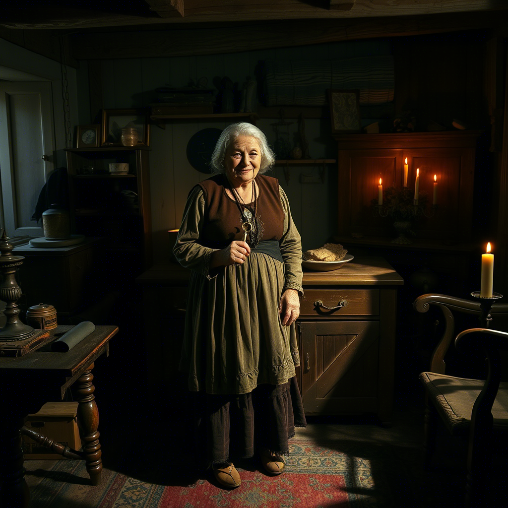 В одну из ночей в доме что-то треснуло. Она вышла из комнаты — и увидела в углу старый сундук. Большой, с железными скобами, закрытый на ржавый замок. Она знала, что он есть, но не трогала. Считала — личное. Старушкино.