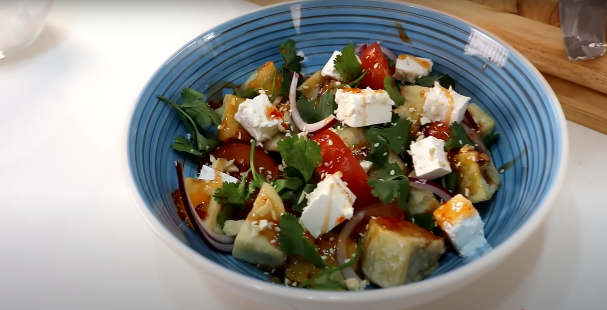 Этот салат с хрустящими баклажанами я впервые попробовала в одном кафе — и с тех пор не могу забыть его вкус. В заведение раньше ходила только ради этого салатика. Блюдо считается одним из хитов ресторанной кухни наряду с Цезарем и приносит миллионы. Но теперь научилась его готовить дома. Поэтому периодически балую семью этой вкуснятиной. Яркий, свежий, с хрустящими баклажанами, сладким перцем, свежими томатами и пикантной заправкой — он поражает сочетанием текстур и ароматов. Получается ничуть не хуже, чем в кафе! 110 ккал