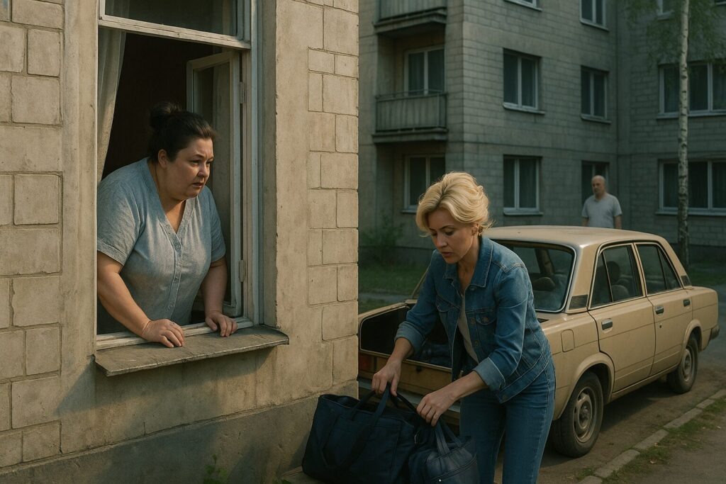 — Лёш! — крикнула она, не оборачиваясь. — Иди глянь, твоя любимая соседка опять укатывает!