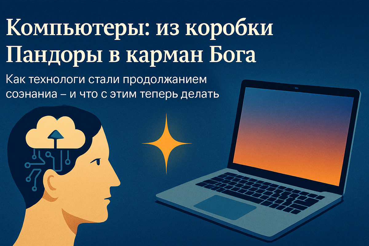 Как технологии стали продолжением сознания — и что с этим теперь делать Всё началось с пустого экрана. Он не знал ничего — ни слов, ни цвета, ни страха. Только цифры и тишина. Первый компьютер не был умным. Он был быстрым. Слишком быстрым, чтобы не начать меняться. 📜 От ламп к логике: как всё закрутилось Первые ЭВМ 1940-х годов напоминали шкафы, полные ламп и гудения. Они занимали целые комнаты, требовали отдельных инженеров и умели всего ничего. Но даже этого «ничего» хватило, чтобы открыть ящик Пандоры. С появлением персонального компьютера в 1980-х всё ускорилось. IBM. Apple. Microsoft. Операционные системы. Графика. Мышка. И — бум! — человечество получило билет в цифровую эру. Мы начали жить на два экрана: один перед глазами, другой — в голове. 🤖 Мы не замечаем, как машины учатся Компьютеры больше не просто считают. Они: понимают речь (не идеально, но стараются), распознают лица (и эмоции — порой лучше психолога), пишут стихи, статьи, сценарии, управляют заводами, горо