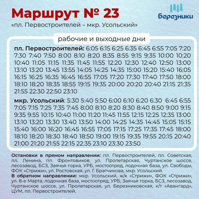 🚌С 1 августа вносятся изменения в расписание маршрута №23