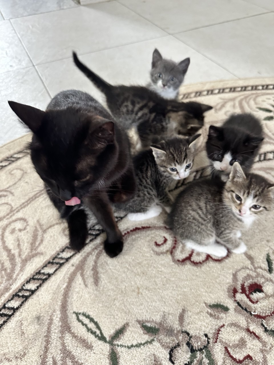 Доброе утро! Помните же дусят? Одна голова и семь лап, что за зверь? Фото на память. Вчера мы попрощались с последним дусёнышем. Отвезли его в его семью, там было столько счастья. Мы рады за дусёнышей, все в хороших и надёжных руках. Но! У нас же есть Ирррааа... Я не поняла? А что это он лежит, без работы? Заняться нечем? Сейчас я придумаю работу. Иди...дрова что ли потаскай, я не знаю, прям. Мама, встаём спина к спине, смотрим где кто. А здесь что? Непорядок! Дуся дусят ищет, ходит по дому и плачет, сердце у неё большое на всех свою любовь распространяет. Вчера вечером мы поли гулять с рыжиками. Серёжа обернулся, так и есть...мы не одни. Кто-то прячется в кустах. Кто-то чёрный крадётся по следу. -Мяяяву, подождите меня. -Ты откуда? Зачем бросила Иришку? -Я с вами хочу. -Пап, вот здесь, вот здесь должны быть грибы, ну или ягоды...а может и мыши. -Ну что вы там? Идёте? Мы пойдём первыми. -Я устала, у меня лапки, хочу на ручки. -Так- то у всех лапки. -У меня меньше всех. Арчи насобирал д