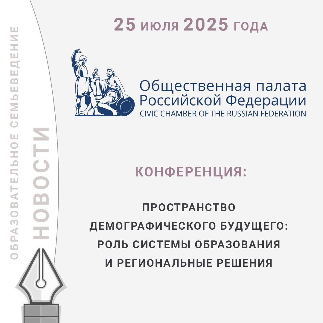 25 июля 2025 г. 10.00–14.00 в Общественной палате РФ (Москва, Миусская пл., д. 7) пройдёт конференция «Пространство демографического будущего: роль системы образования и региональные решения».