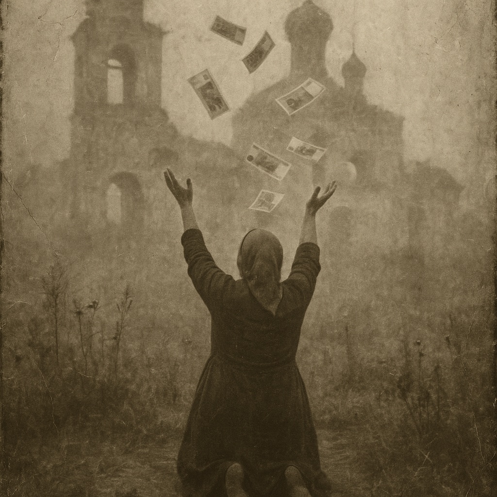 Она нашла настоятеля, пожилого иеромонаха отца Филарета, который жил в строительном вагончике. Со сбивчивым, захлебывающимся плачем она рассказала ему всё. И про сына. И про обет. И про фальшивые деньги. В конце она бросила сумку к его ногам.