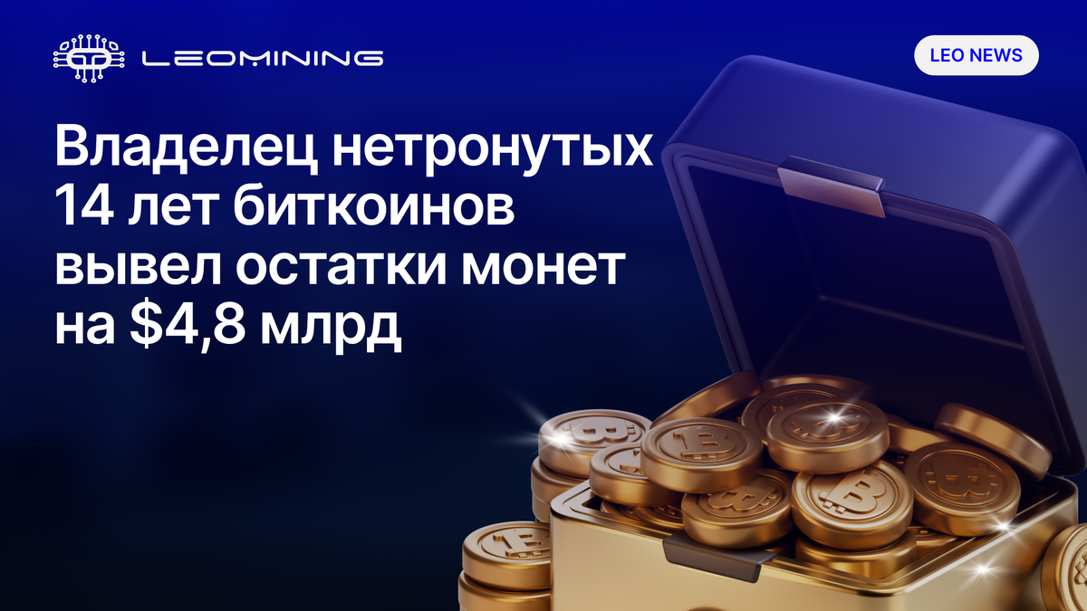 Владелец нетронутых 14 лет биткоинов вывел остатки монет на $4,8 млрд