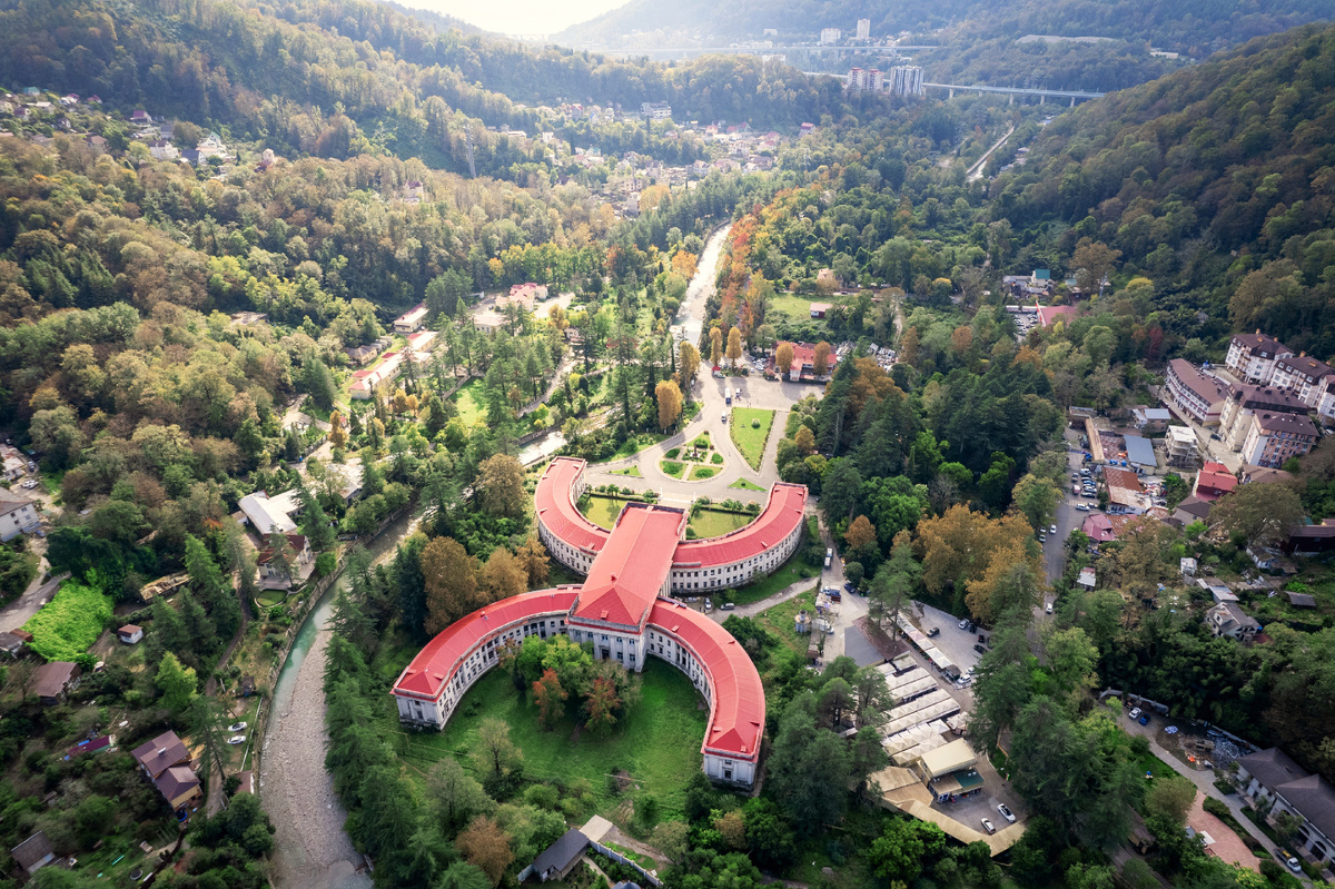 Вокруг водолечебниц посажены уникальные растения, которые были привезены в конце XIX – начале XX вв. со всех концов мира и прекрасно адаптировались в условиях субтропического климата черноморского побережья.