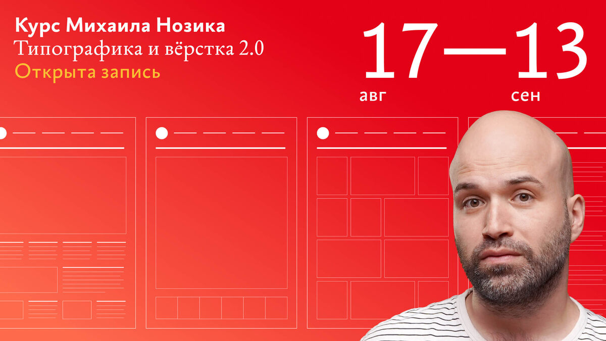 Открыта запись на курс Михаила Нозика «Типографика и вёрстка 2.0» с 17 авг по 13 сен — сэкономьте 20% при ранней записи
