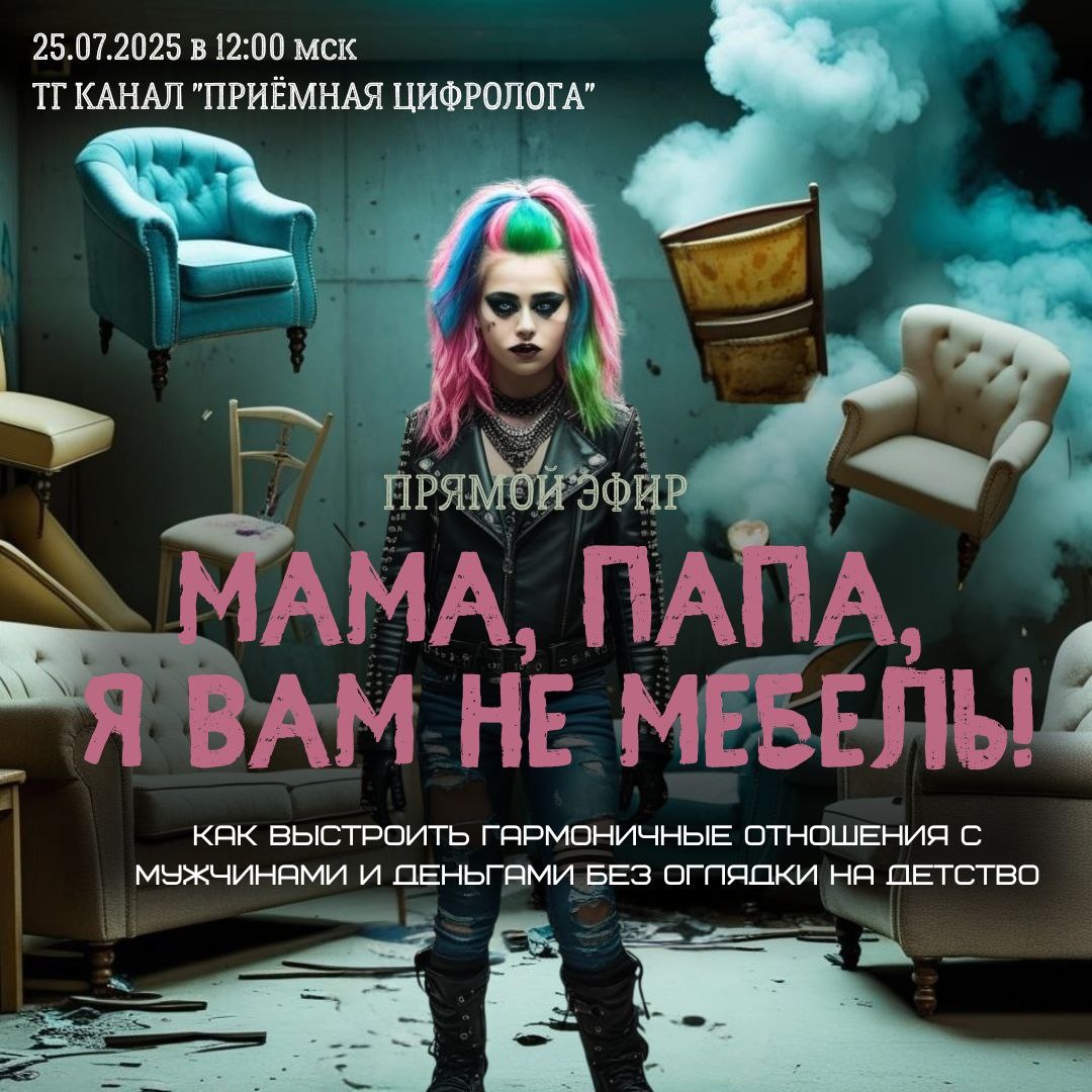 💓 ЭКСКЛЮЗИВ ДЛЯ НАШИХ: Прямой эфир "Мама, папа, я вам не мебель!" 👑 Привет, родные! 🤩 Задумывались ли вы, почему иногда так сложно: 🤩Отстоять свои границы в отношениях (и с мужчинами, и с миром)? 🤩Зарабатывать столько, сколько вы действительно стоите? 🤩Просто сказать "нет" или попросить то, что вам нужно? 🧸 Корень многих этих трудностей может лежать глубоко в детстве. В том ощущении, когда твои чувства, твои "хочу/не хочу" игнорировались самыми близкими людьми... Словно ты был не живой человек, а просто предмет обстановки — мебель. ❤️ПРИГЛАШАЕМ ВАС НА МОЩНЫЙ ПРЯМОЙ ЭФИР: "Мама, папа, я вам не мебель!" Как отношения с родителями влияют на деньги и отношения". Как выстраивать здоровые отношения с мужчинами и деньгами без оглядки на травматичное детство. 🗓 ДАТА: 25 июля 2025 г. (это ЗАВТРА!) 📲 ВРЕМЯ: 12:00 по МСК 🤩 ГДЕ: В этом закрытом канале "ПРИЕМНАЯ ЦИФРОЛОГА"! 🧒 Ваши проводники к исцелению: 👉 Надежда Михайлова: Таронумеролог, цифровой психолог. Поможет увидеть глуб