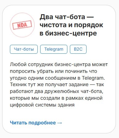Свежий #кейс на сайте У нас регулярно выходят свежие кейсы на сайтах, чтобы вы могли с ними познакомиться и кайфануть! Сегодня рассказываем про свежий кейс про целую небольшую систему из двух ботов, призванных обеспечить порядок на территории бизнес центра. Строго говоря, подобные системы уже относятся скорее к веб проектам где чат-боты идут скорее прицепом. Но мы и такое прекрасно делаем. Система была нужна для команды обслуживающей этот самый бизнес центр, чтобы им было проще менять лампочки, убирать лужи пролитого кофе и все в таком духе. Кроме оперативного поступления и работы с информацией, конечно, тут были все плюсы подобных систем: например что вся история сохраняется и к ней можно в любой момент вернуться. Скорее читайте кейс по ссылке ниже и заказывайте у нас подобные решения и для своего бизнес центра тоже! Ссылка на кейс на нашем сайте: https://botcreators.ru/blog/dva-chat-bota-chistota-i-porjadok-v-biznes-centre/