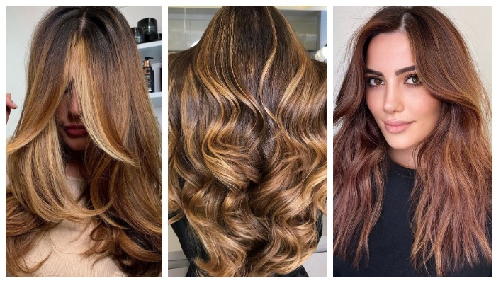 Окрашивание в технике шатуш, балаяж и аир-тач с золотистыми оттенками великолепно подходит как шатенкам, так и темноволосым красавицам. Создать эффектное и многогранное окрашивание с яркими переливами помогут локоны с текстурным объёмом.