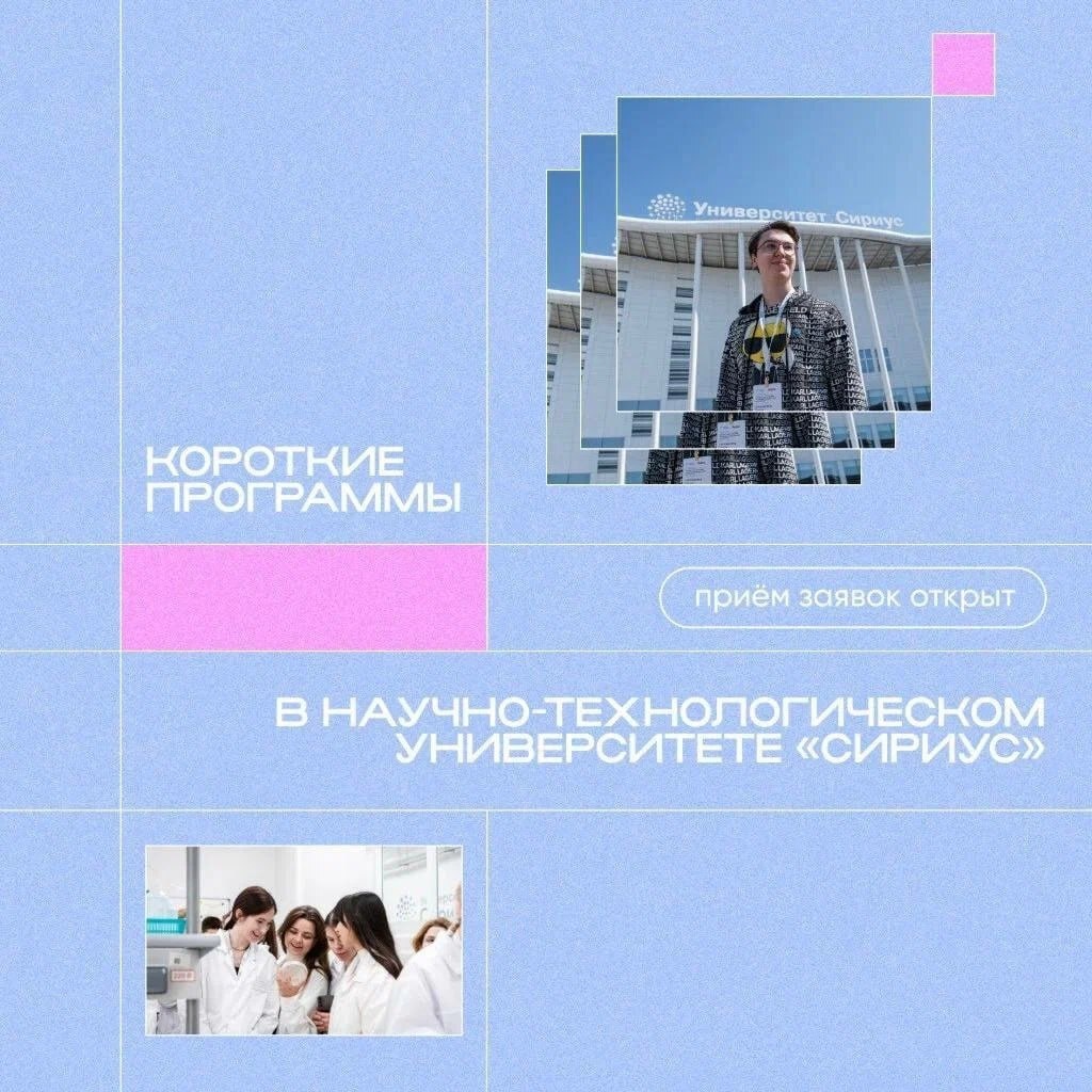 Как попасть в Сириус студентам и молодым учёным в 2025 году? Университет «Сириус» с августа по декабрь проведёт серию образовательных форумов, конференций и программ. Подробнее о них: «Международная климатическая дипломатия» — clck.ru/3NFuM5; Приём заявок — до 28 июля📍 Конференция по экологии и вопросам изменения климата ICECC 2025 — clck.ru/3NFuTp; Приём заявок — до 14 августа 📍 Интенсив по воспроизведению современных научных результатов — clck.ru/3NFuXv; Приём заявок — до 16 августа 📍 Интенсив по анализу данных и моделированию — clck.ru/3NFucv; Приём заявок — до 10 сентября 📍 Форум «Педагогика смыслов: исследуем и создаём» — clck.ru/3NFufH; Приём заявок — до 15 сентября 📍 Организация и функционирование центров коллективного пользования — clck.ru/3NG3Ey; Приём заявок — до 1 октября 📍