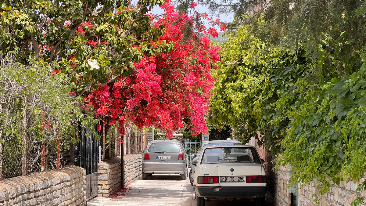 Бесцельно петляя и заглядывая во дворики, восхищаясь зарослями бугенвиллии всех оттенков, я словила себя на мысли, что, действительно, Бодрум на типичную Турцию не похож, а белый цвет простых по форме домов с голубыми дверцами так и возвращает меня куда-то к греческим берегам.