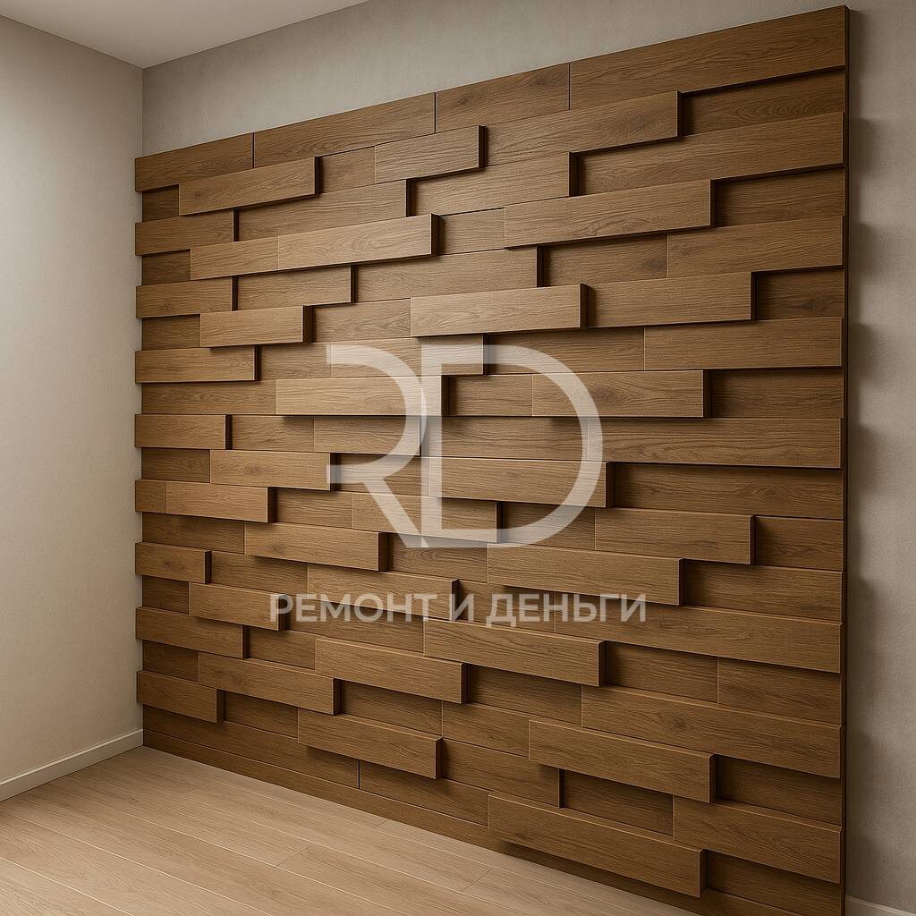 🔹🔹🔹🔹 🔹🔹🔹 🔹🔹🔹🔹🔹🔹🔹 🪵 Ламинат на стене? Да, и ещё 3D! Хотите акцентную стену, от которой невозможно отвести взгляд? Забудьте об обоях и краске — попробуйте 3D-ламинат. Это не просто декоративная отделка, а настоящая объёмная композиция, которая добавляет интерьеру глубину и стиль. 📐 Что использовалось: • Панели Крона Уол-3D от Kronospan — 1296×132 мм, 12 мм толщиной. • Направляющие от террасной доски, кляймеры, дюбели, саморезы и прочие монтажные мелочи. • Инструменты: лобзик, уровень, шуруповёрт, перфоратор — стандартный арсенал. 🧱 Монтаж шаг за шагом: Проверка геометрии стены лазерным уровнем. Разметка под обрешётку с шагом 40 см. Установка направляющих с зазором 1 см от потолка. Выравнивание с помощью клиньев. Монтаж панелей в три уровня — каждый со смещением, создающим ярко выраженный 3D-эффект. Замки панелей идеально фиксируют их между собой. ✨ Что получилось в итоге? • Интересная фактурная стена, которая не требует идеально ровного основания. • Полное преоб