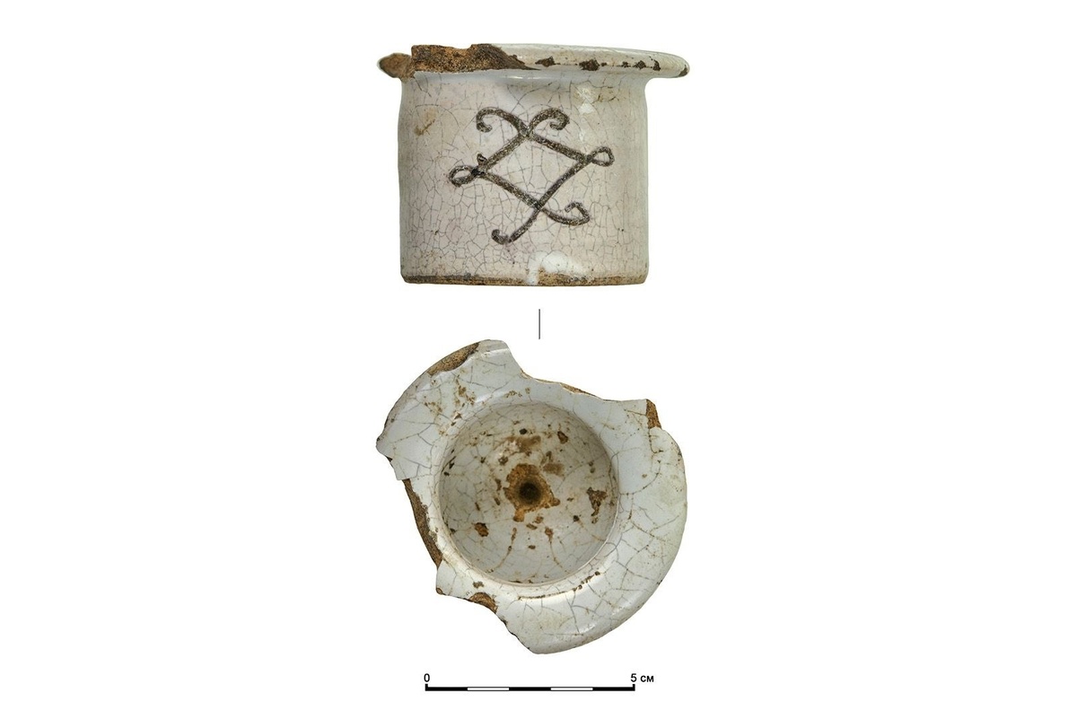 🔎 Археологи нашли старинную помадную баночку из фарфора в Калошином переулке.