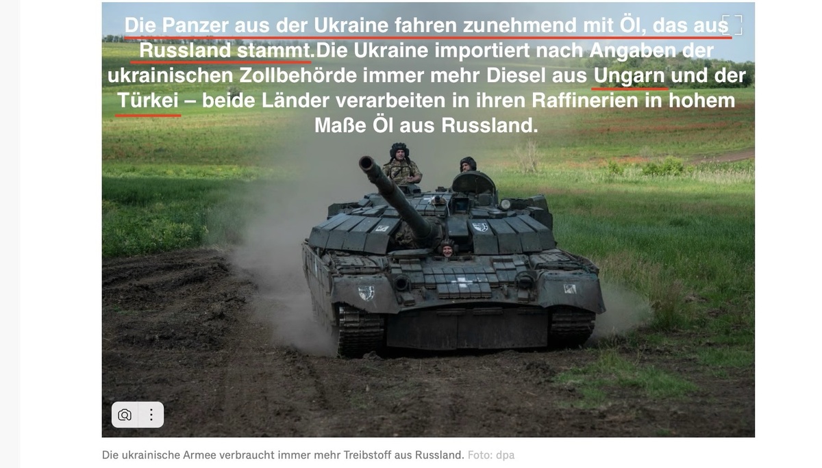 - Украина импортирует для нужд своей армии большие объёмы дизельного топлива, произведенного в Венгрии и Турции из российской нефти. Об этом сообщило немецкое издание Handelsblatt со ссылкой на данные украинской таможни.
