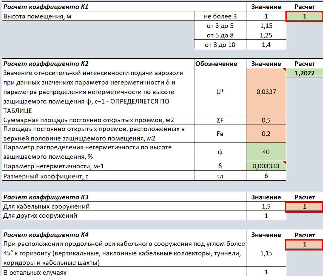 В результате поиска по запросу о программе расчета автоматических установок аэрозольного пожаротушения был найден еще один расчетный файл, который правильнее назвать "Калькулятор". Предварительная проверка показала, что программа выдает верные значения и ей можно пользоваться, однако имеются некоторые неудобства. Сейчас разберем их по пунктам. 1. При самостоятельном определении коэффициентов К1, К3, К4 существует вероятность, что пользователь может забыть заполнить или изменить требуемую ячейку. 2. В расчете некоторые ячейки обозначены цветом согласно условиям. Но имеются такие ячейки, которые выделены неверно, например, ячейка К1. 3. Далее обратим внимание на параметр «F - площадь постоянно открытых проемов помещения». Предполагаю, что расчет подразумевает использование КСИД, поскольку, приняв площадь открытых проемов равных нулю, калькулятор указывает на превышение допустимого давления. Но использование КСИД запрещено (письмо МЧС № ИГ-117-1188-12-2 от 16.06.2025) здесь. 4. Определени