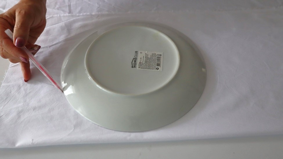Салфетка — это не просто кусочек ткани, который лежит на столе. Она способна полностью преобразить сервировку, добавить уюта и красоты даже в самый обычный приём пищи. Ведь сервировка — это не только красивая посуда, но и скатерть, и салфетки. Очень важно, чтобы это были именно тканевые изделия, а не клеёнка или бумажные салфетки. Ткань смотрится намного наряднее, а если она ещё и накрахмалена — эффект сразу совсем другой. Салфетки бывают разные. Одни предназначены для использования во время еды — их кладут на колени или берут в руки, чтобы не запачкаться. А другие — чисто декоративные. Такие салфетки кладут под тарелки, чтобы создать красивую композицию на столе. Мне захотелось сделать салфетку круглой формы и с рюшами по краю. Для начала взяла обычную тарелку диаметром 30 см. Обвела её прямо на ткани — у меня получилось два круга. Для рюши выкроила длинную полосу ткани шириной 11 см. Чтобы узнать нужную длину этой полосы, измерила окружность круга сантиметровой лентой. Полученную дли