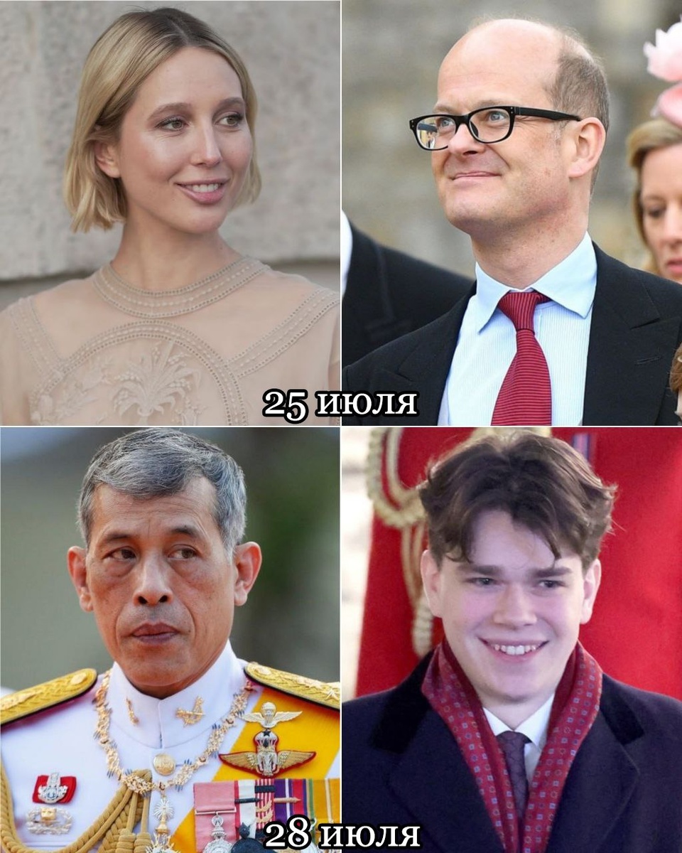♌️ Лев (23 июля – 21/23 августа) Много совпадений в один день! 🇬🇷 Принцесса Мария-Олимпия, 🇬🇧 лорд Николас Виндзор (сын герцога Кентского) – 25 июля 🇹🇭 Король Рама X (Таиланд), 🇬🇧 Сэм Чатто (внук Маргарет) – 28 июля 🇱🇺 Принц Луи (Люксембург), 🇲🇨 Шарлотта Казираги, 🇸🇪 принцесса Кристина (Швеция), 🇯🇴 принцесса Иман (дочь кронпары) – 3 августа 🇬🇧 Меган и Елизавета, королева-мать – 4 августа 🇬🇧 Принцесса Беатрис, 🇶🇦 шейха Моза – 8 августа 🇧🇳 Принц Матин (Бруней) – 10 августа 🇬🇷 Принц Ахиллес-Андреас – 12 августа 🇬🇧 Принцесса Анна, Мод Виндзор (внучка Майкл Кентских), 🇫🇷 Наполеон I – 15 августа 🇲🇨 Беатрис Борромео – 18 августа 🇳🇴 Кронпринцесса Метте-Марит – 19 августа 🇧🇪 Принц Габриэль (Бельгия) – 20 августа 🇬🇧 Принцесса Маргарет, 🇲🇦 Король Мохаммед VI (Марокко) – 21 августа ⬅️ ♋️ Рак | Лев | ♍️ Дева ➡️ Львы, ваш черед 🦁 с кем совпали?