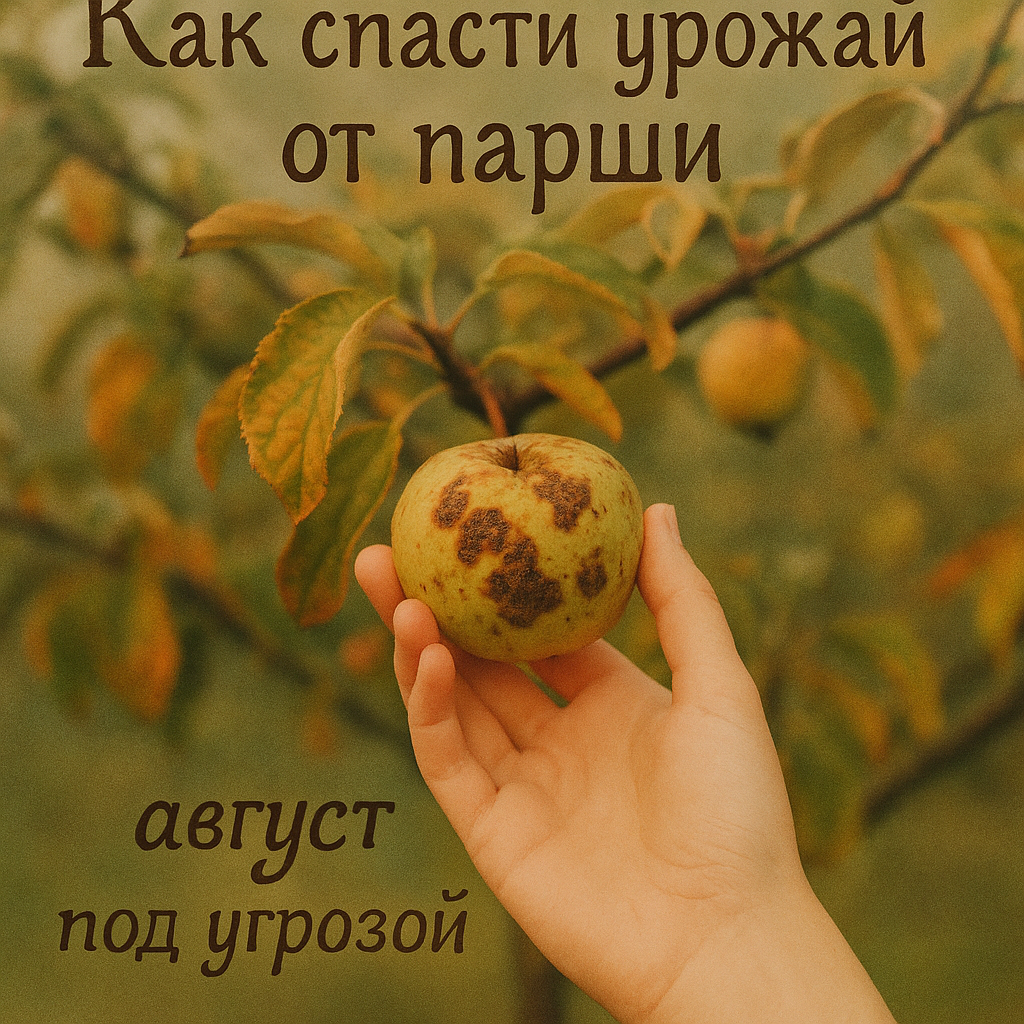 Яблоня — как та самая соседка, которая выглядит спокойно и неприхотливо, но на самом деле требует к себе кучу внимания. Особенно в августе, когда кажется, что урожай вот-вот созреет, и уже можно расслабиться. Но именно в этот момент может появиться она — парша. С виду ничего страшного: пятнышки на листьях, немного деформированных яблок… А потом ты понимаешь, что из целого ведра плодов пригодна только треть. Остальное — в компост. Обидно? Очень. По сути — грибковое заболевание. Оно появляется, когда влажно, прохладно, и листья долго остаются мокрыми. Особенно это актуально для августа: ночи уже не жаркие, роса ложится щедро, дожди идут всё чаще. А в таких условиях парша чувствует себя просто прекрасно. Первый «звоночек» — пятна на листьях. Они оливковые, с бархатистым налётом. Потом — те же пятна на плодах, только тёмные, твёрдые, как будто коркой покрыты. Яблоко вроде целое, но вкус уже не тот. Иногда оно вообще трескается, гниёт или высыхает прямо на дереве. Потому что: Так что если