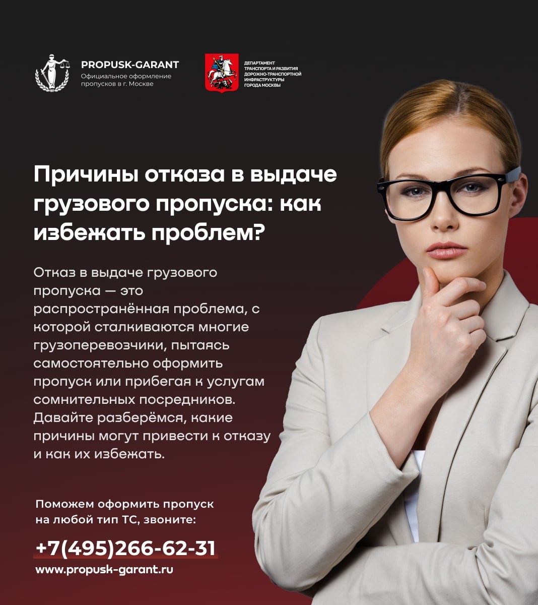 Отказ в выдаче грузового пропуска — это распространённая проблема, с которой сталкиваются многие грузоперевозчики, пытаясь самостоятельно оформить пропуск или прибегая к услугам сомнительных посредников. Давайте разберёмся, какие причины могут привести к отказу и как их избежать. 1. Ошибки при подаче документов Самая распространённая причина отказа — это ошибки в представленных документах. Чаще всего встречаются такие проблемы: - Неточности или недостоверная информация в анкете заявителя. - Неправильно указаны данные автомобиля (марка, модель, VIN-код). - Ошибка в номере свидетельства о регистрации транспортного средства. Подобные ошибки приводят к немедленному отказу в выдаче пропуска. 2. Наличие неоплаченных штрафов Еще одна распространённая причина отказа — наличие неоплаченных штрафов за нарушение ПДД. До погашения всех задолженностей пропуск не выдадут. Обязательно проверьте оплату всех имеющихся штрафов перед подачей заявки. 3. Аннулирование предыдущего пропус