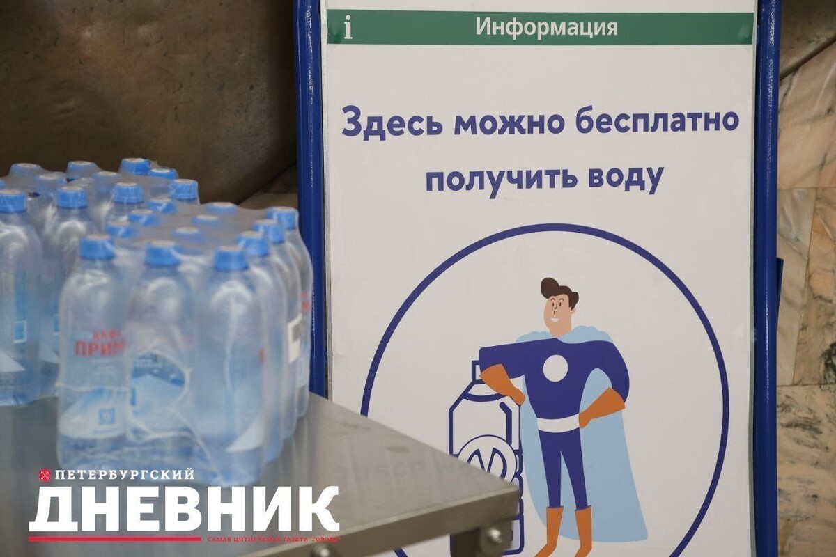 Фотокорреспондент «Петербургского дневника» запечатлел процесс раздачи бесплатной воды на станции метро «Маяковская».