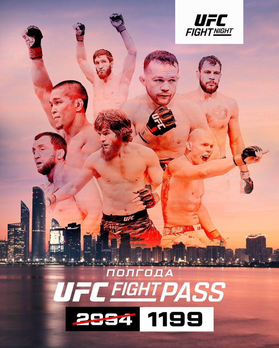 Мы запустили выгодную акцию и снизили цену на полугодовую подписку. Подписывайся на UFC Fight Pass и смотри все прямые трансляции и повторы боев всего за 1199 рублей!