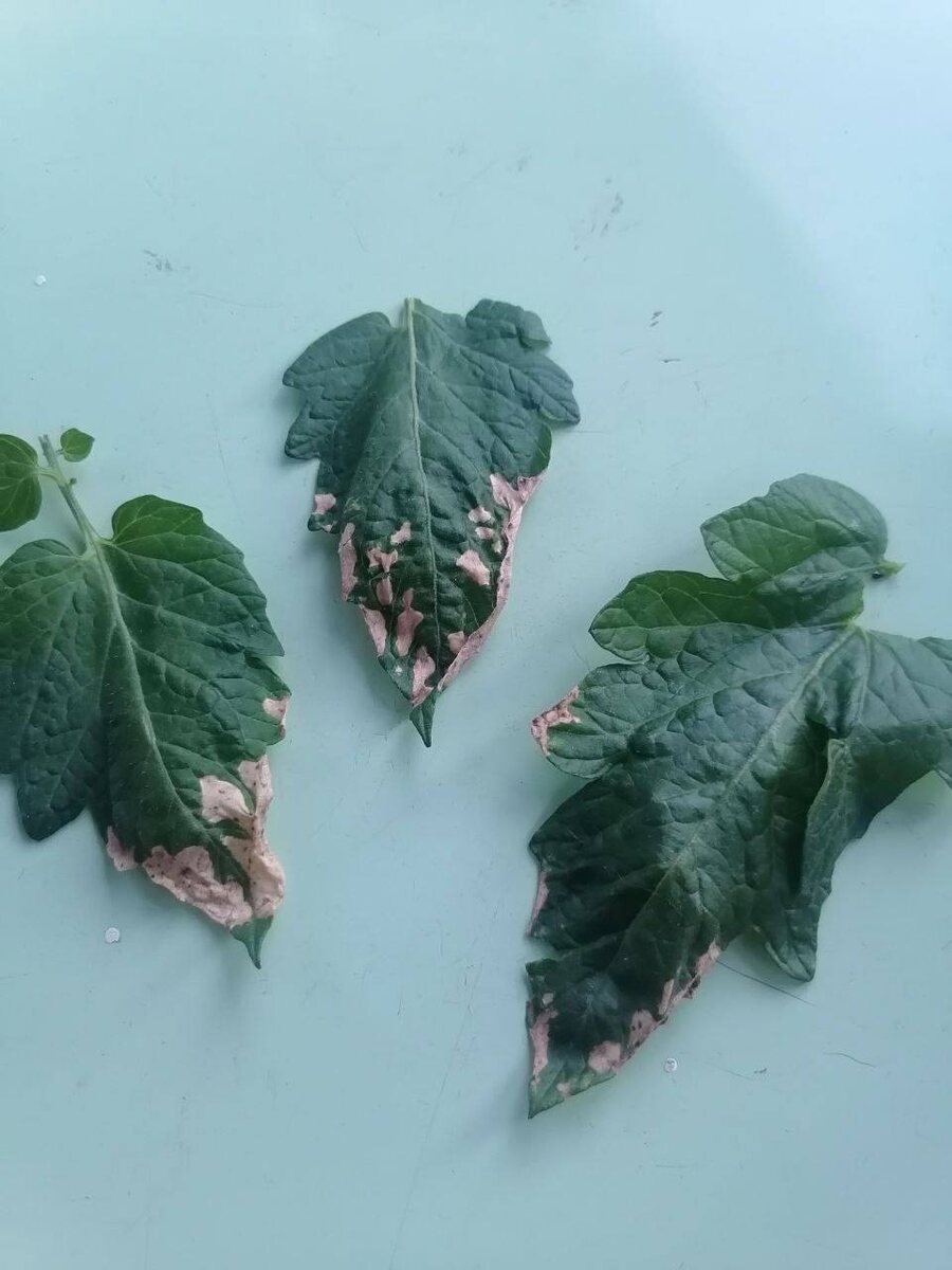 Мариночка, добрый вечер! Вот что я обнаружила в помидорной теплице, вот такие листики, сорвала какие увидела, пока несколько штук только. Что это и как с этим бороться?