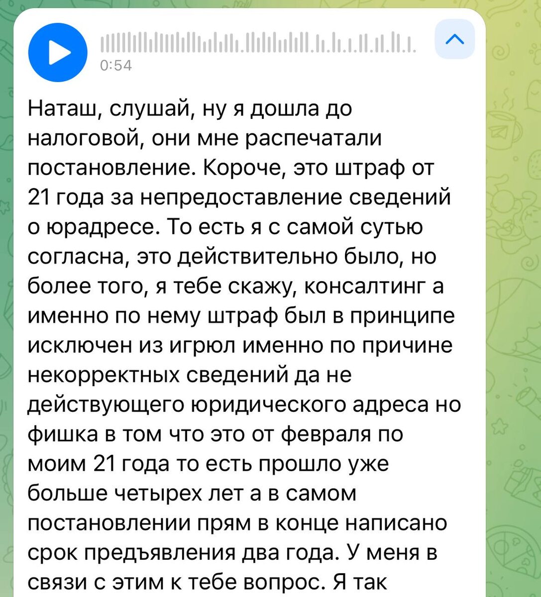 Налоговая достала из гроба штраф 4-летней давности! Привет, коллеги-предприниматели! Вот вам свежий пример, как ФНС выжимает деньги из воздуха, надеясь, что вы сдадитесь без боя. Ситуация: человек получает штраф 5 000 ₽ за "недостоверность юр. адреса" компании... по постановлению за 2021 год! При этом: - Компания уже ликвидирована (и давно!). - С момента нарушения прошло больше 4 лет. - В самом постановлении чёрным по белому: "срок предъявления — два года". Но нет, налоговая решила, что законы — для лохов. Выкатывают требование в 2025-м, когда на носу уже 2026 год! Что это, если не "налог на дурака"? Расчёт прост: большинство заплатит, потому что: - Нет времени разбираться. - Страшно спорить с госорганами. - Не знают, что сроки давности истекли. А ФНС тем временем копит статистику "исполнения" и пополняет бюджет за счёт тех, кто не готов судиться. Где Конституция? Статья 57: *"Каждый обязан платить законно установленные налоги и сборы"*. Но где здесь "законно", если: - Нарушены с