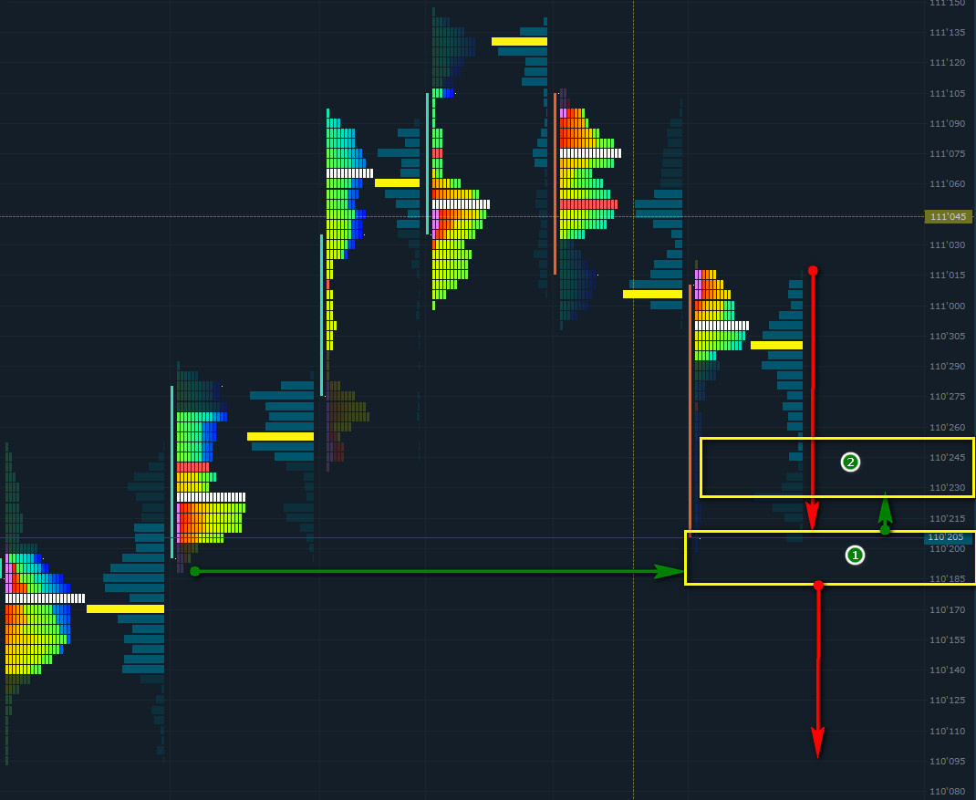 Если импульс сохранится - логично следовать за движением до появления покупателя. 🔸 Покупатель в зоне (1)
