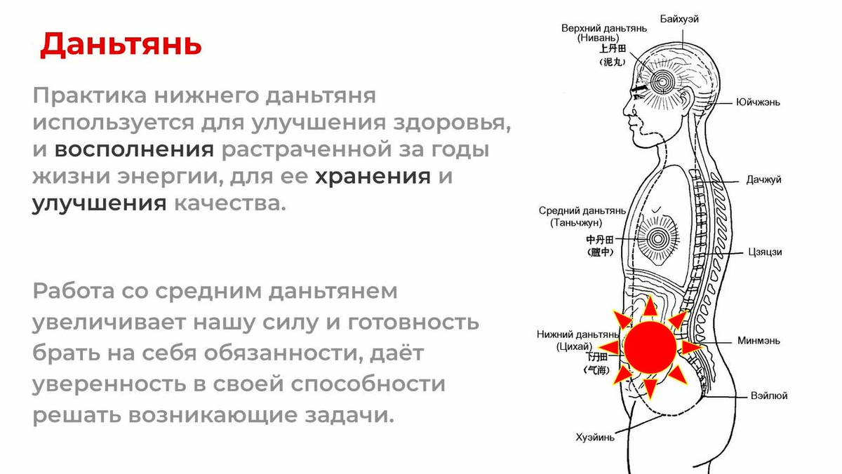 Опусти внимание глубоко вниз живота, чуть ниже пупка. Представь там тихое, теплое озеро спокойной энергии. Это твой Нижний Даньтянь. Не просто точка на схеме – это твой фундамент, твоя батарейка жизни. Когда ты концентрируешься здесь, ощути, как тело становится тяжелее, укорененнее, словно дерево, пускающее корни в землю. Чувствуешь эту мягкую пульсацию, это едва уловимое тепло? Это твоя изначальная Ци, твоя жизненная сила, пробуждается. Это твой центр тяжести, источник устойчивости и физической мощи. Представь, как с каждым вдохом это озеро энергии слегка расширяется, наполняя низ живота приятной тяжестью и спокойной силой. Это Средний Даньтянь – обитель сердца и эмоций. Ощути пространство за костью. Представь там светящееся солнце, излучающее тепло и сострадание. Сделай глубокий вдох – почувствуй, как грудная клетка мягко расширяется, а это внутреннее солнце разгорается ярче, растворяя сжатость, тревогу, обиды. Выдохни – представь, как золотой свет этого солнца разливается по всему т