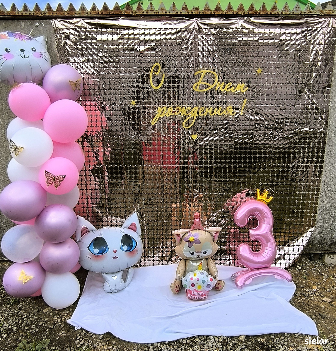 Всем привет, дорогие мои! День рождения малышки отмечали во дворе у свекрови. Планировали устроить пикник, но погода подвела. Пришлось накрывать стол под навесом около гаража. Фотозона слегка пострадала, мне не удалось украсить, как планировала. Вверху должны быть бумажные цветы, но из-за осадков и сильного ветра пришлось отказаться от этой затеи. Несмотря на капризы погоды, настроение у всех было замечательное. Утром был дождь, поэтому подарок дочка нашла в прихожей. В течении дня несколько раз заносили и выносили шары🤭 Собрались самые близкие: бабушки, дедушка, тети, племянники, братья и сёстры. Шум, смех и веселые игры заполнили пространство. Малышка светилась от счастья, распаковывая подарки и принимая поздравления. Торт, испекла и украсила сама. Сахарные картинки слегка поплыли из-за влажности. На вкус торт был великолепен. "Молочная девочка" с кремом из маскарпоне и сливок. С бананом и клубникой. Свечи задували всем миром, загадывая самые сокровенные желания для нашей маленько